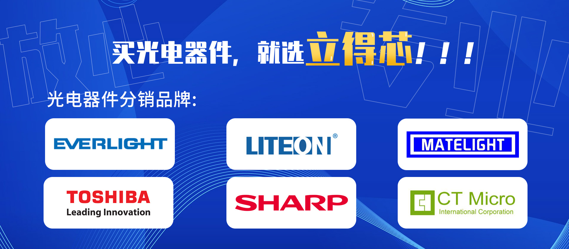 分銷各類主動元件(IC集成電路,存儲芯片,光電器件、二、三極管等)和被動元件(電容、電阻、電感等)及機電元件(連接器、開關器件)等。 分銷品牌有臺灣品牌,臺灣光寶/億光/ CT兆龍/奧倫德/ MATELIGHT/ MATEON /ST/TI/長電/山東晶導微/先科/創(chuàng)基/楊杰/NXP等品牌。